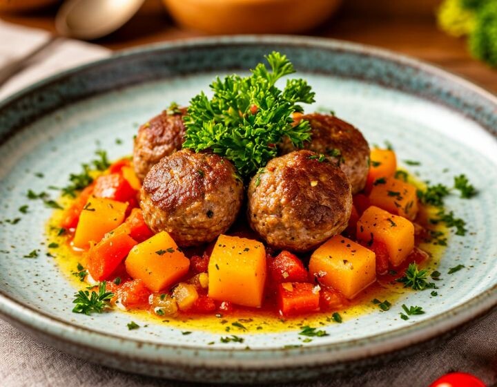 Добавьте в блюдо ярких красок для хорошего аппетита Мясные шарики можно заготовить впрок и заморозить. Для этого положите их на тарелку, застеленную пищевой пленкой, и поставьте в морозилку. Когда шарики замерзнут, пересыпьте их в контейнер или плотный пакет. А ваши дети любят блюда из фарша?