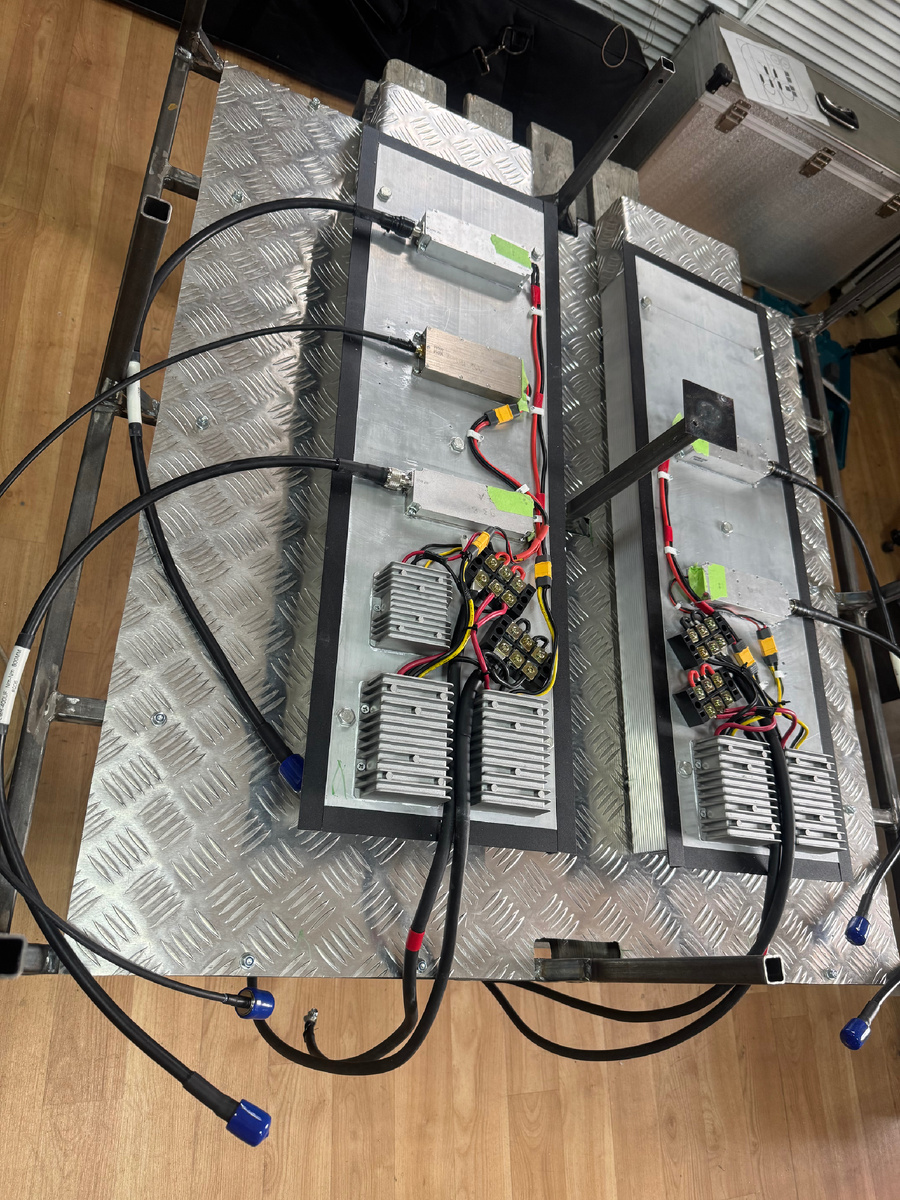Сверху над рамой мы монтируем несущую панель антенн с отверстиями для прохода кабельных сборок. Все пять антенн крепятся на эту несущую панель и находятся по габаритам также внутри габарита основной рамы метра на метр.