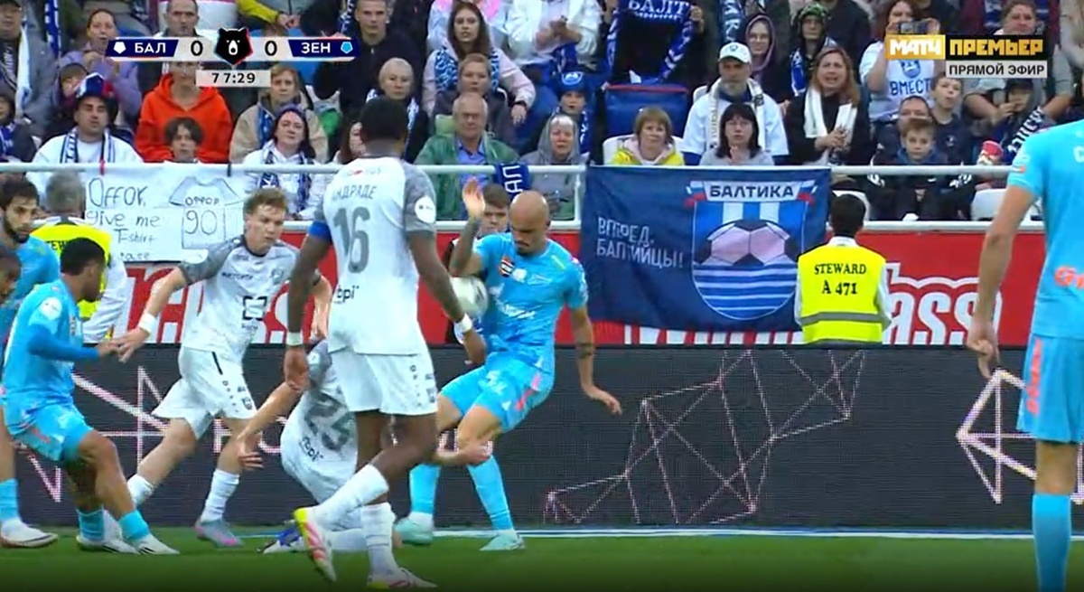 Мешков занимал хорошую, открытую позицию, мяч пущен с близкого расстояния, после рикошета для игрока №6 команды Зенит стал неожиданным.
