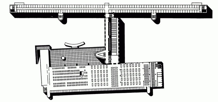 В плане дом-коммуна похож на проекцию самолёта.