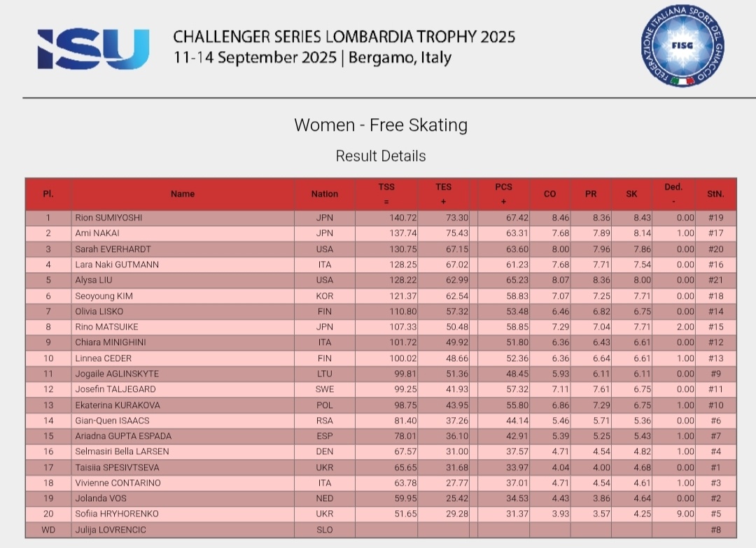 Lombardia Trophy- 2025. Девушки. Произвольная программа.