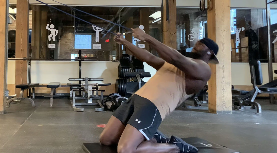 Слишком легко? Возьмите в руки блин от штанги (5, 10 или 20 кг) и держите его у груди. Добавление даже небольшого веса делает движение невероятно сложным.