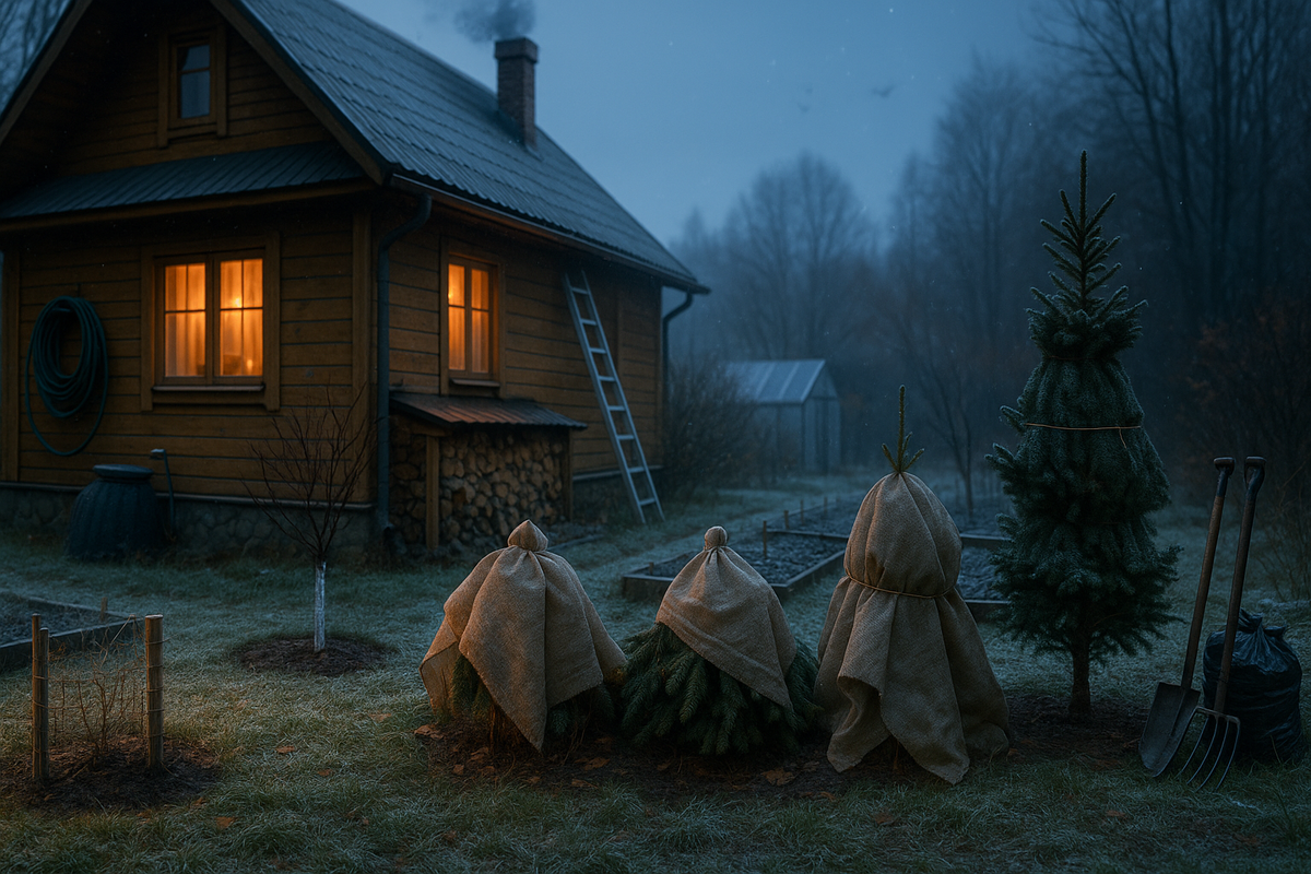Дача шепчет: «Укрыть, слить, закрыть». Всё просто, пока тепло. Потом — поздно. Делим подготовку на 17 быстрых дел и закрываем сезон. Начинать — как только дневная держится около +5…0 °C. В средней полосе это обычно конец сентября — середина октября. Юг — позже на 2–4 недели, север — раньше. Не тяните: земля и дерево остывают быстрее, чем кажется. 📝 Вода при замерзании расширяется примерно на 9%. Любая «капля в трубе» зимой превращается в «разрыв трубы». Дом, баня, летний водопровод, бойлер, радиаторы, стиралка/посудомойка, унитазы, сифоны. Откройте все краны, продуйте магистрали компрессором. Шланги — скатать, высушить, убрать в тепло.