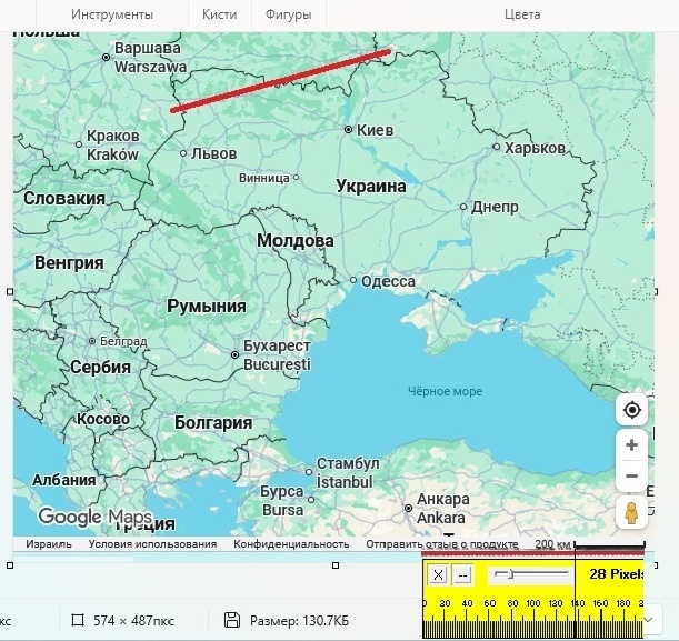 Небензя: «Дальность полета использованных в ходе удара беспилотных летательных аппаратов не превышала 700 километров, что делает физически невозможным их попадание на польскую территорию» (Постпредство РФ при ООН https://russiaun.ru/ru/news/unsc_poland_120925). Я не понимаю, зачем ставить ТАКОЙ довод. Вся линейка – 196 делений. 200 км – 196 – 138 = 58 делений. Расстояние между Россией и Польшей – 196х200/58 = 675 км, что меньше 700 км. 14 сентября 2025 г.