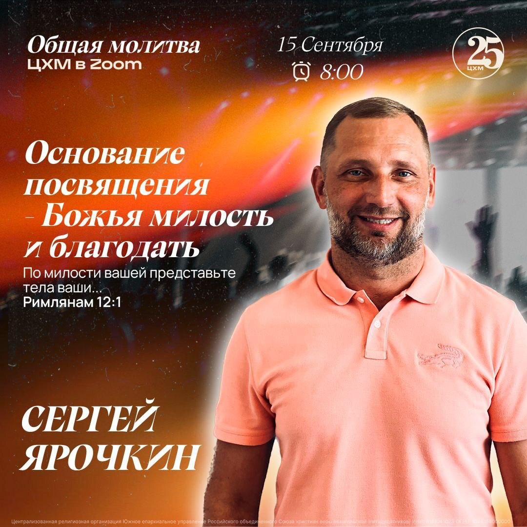 Завтра с нами на молитве будет Сергей Ярочкин ✝️📔 Тема: «Основание посвящения - Божья милость и благодать» 15 сентября / 8:00 / Zoom Посвящение – это не попытка «заработать» любовь Бога, а ответ на уже проявленную Им милость и благодать. Вся наша способность посвящать себя исходит из того, что Он первый возлюбил нас и дал нам спасение даром. «По милости вашей представьте тела ваши...» (Римлянам 12:1) 📌Ссылка на Zoom доступна у лидера вашей домашней группы.
