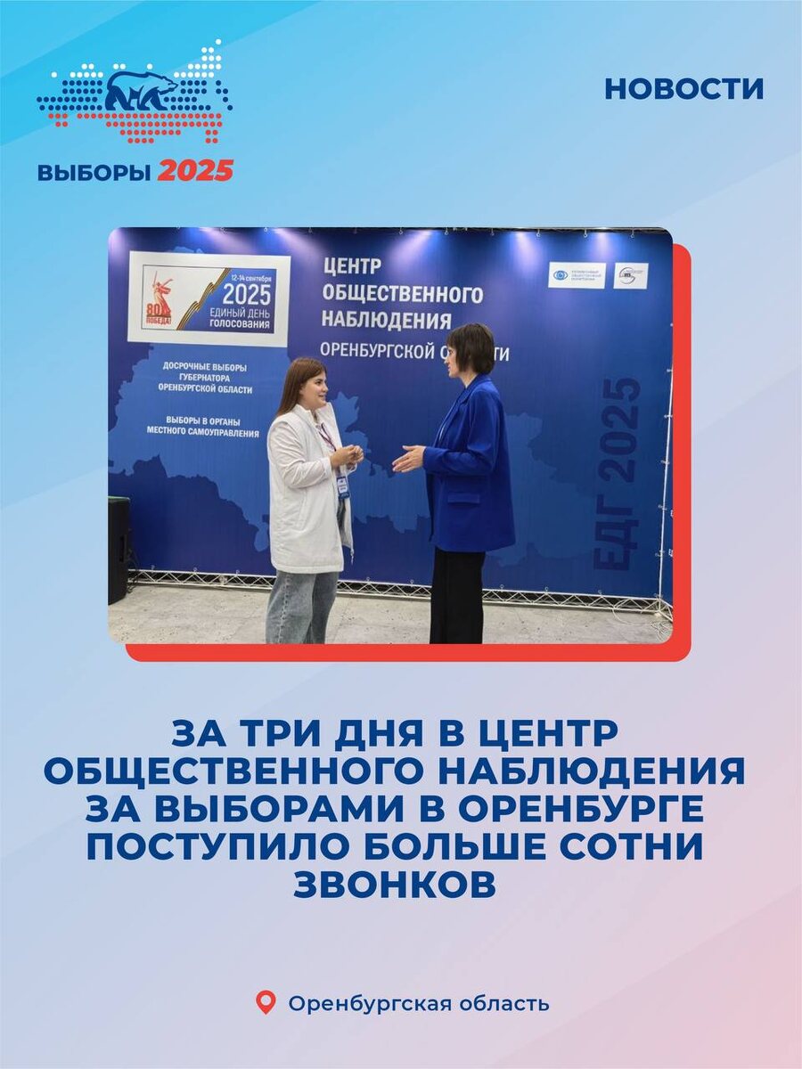 🔹За три дня в Центр общественного наблюдения за выборами в Оренбурге поступило больше сотни звонков