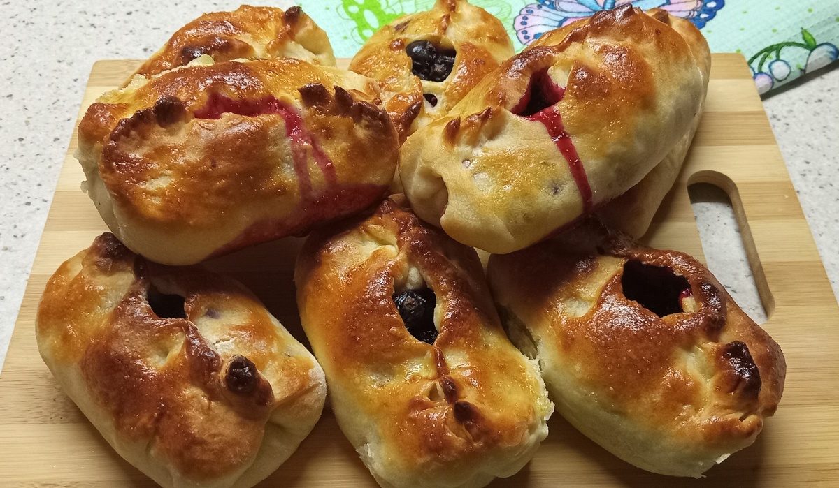 Осталось немного дрожжевого теста, решила приготовить пирожки с черной смородиной. Ягоды были замороженные, и я их не размораживала. Замороженные ягоды при приготовлении пирогов меньше растекаются. Время приготовления: около 1 часа. Берем готовое тесто, нарезаем на куски, делаем из каждого небольшую лепешку. Берем замороженные ягоды и выкладываем их на каждый раскатанный кусок теста. Посыпаем сахарным песком и манкой. Формируем пирожки. Выкладываем пирожки на противень, застеленный бумагой для выпекания, смазываем каждый пирог взбитым свежим яйцом. Выпекаем пироги в разогретой духовке 25-30 минут при температуре 160-170°C. Пироги очень вкусные! Приятного аппетита!