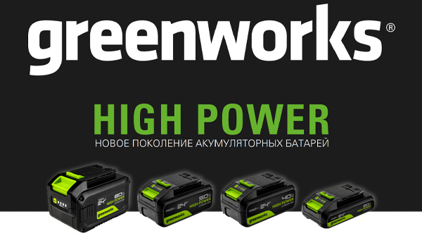 Устали, что аккумулятор садится в самый неподходящий момент? Кажется, что аккумуляторному инструменту не хватает мощи для серьезных задач? Новинка Greenworks High Power решает именно эти проблемы.