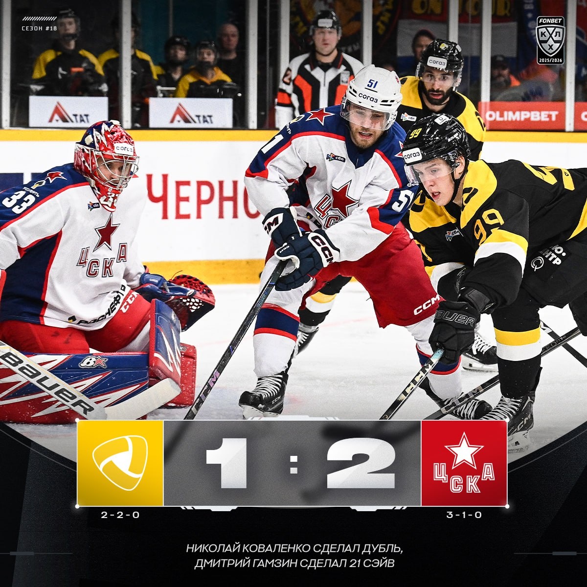 🐴 Дубль Николая Коваленко принес ЦСКА победу в Череповце! #ФонбетКХЛ