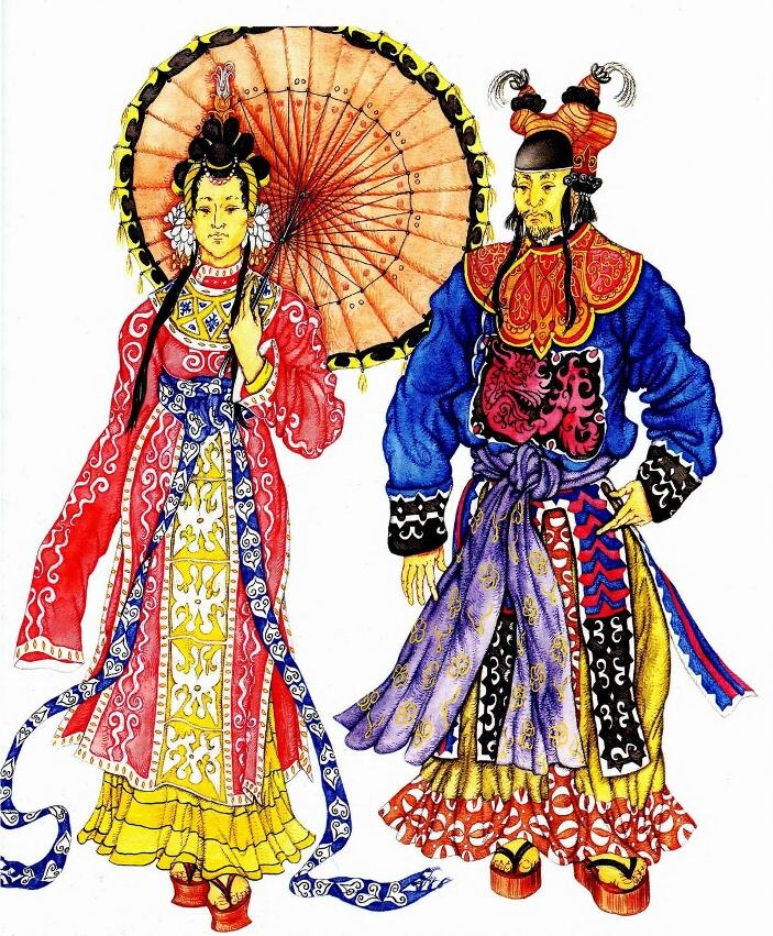 - Одежда чиновников: имела строго регламентированные цвета и вышивки с изображениями животных, указывающими на ранг.