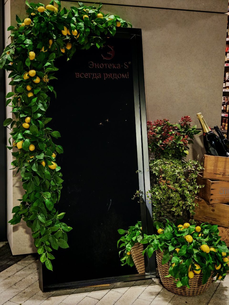 Фотозона с зеркалом и лимончиками у входа в Энотеку, ЖК UNO