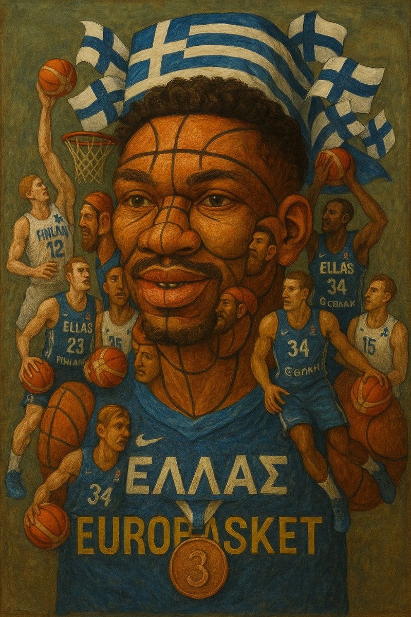 Греция уверенно контролировала ход поединка за третье место Евробаскета против Финляндии от начала и до последних пяти минут. В финальную пятиминутку безраздельно властвовала Финляндия - даже счёт сравняла. И всё-таки "греческий бог" Яннис Адетокунбо с линии штрафных принес своей сборной победные очки и звание бронзового призера чемпионата Европы. В стиле Арчимбольдо