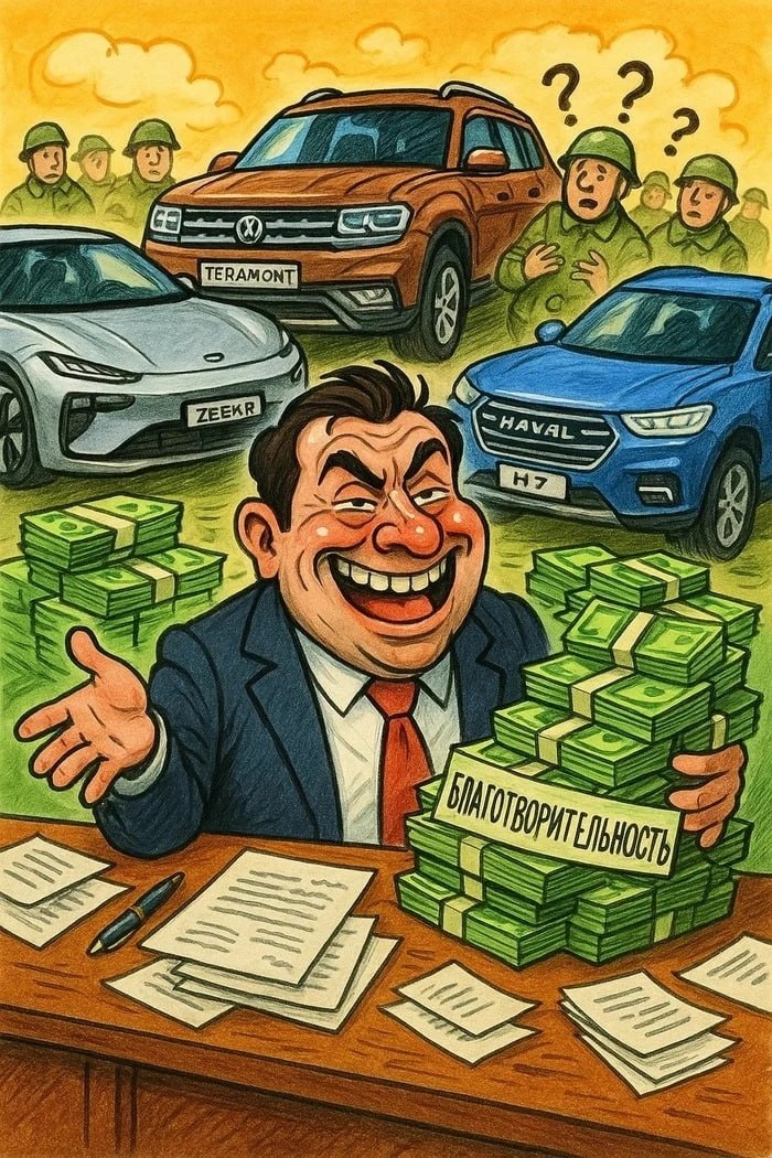 Роман Алёхин: 10 миллионов рублей, три машины и один «благотворительный» поворот История военного блогера и бывшего советника курского губернатора Романа Алёхина приобретает форму настоящего детектива. Каждый день появляются новые подробности. Итак, куда же он потратил 10 миллионов рублей? Автопарк для души… и налогов Несмотря на звание «общественник» и «благотворитель», у Алёхина был автопарк, который заставляет задуматься: а фонд-то для кого? Три премиум-автомобиля общей стоимостью свыше 10 миллионов рублей: электромобиль ZEEKR 001 (4,3 млн), Volkswagen Teramont (3,5 млн) и Haval H7 (от 3,5 млн). Любопытно, что ZEEKR он оформил на собственное ООО «МРЦ Орто-Доктор имени Ю.И. Алёхина». По словам бухгалтерии, так можно снижать налоговую нагрузку, а по словам прохожих, просто красиво смотрится. Весной два автомобиля были проданы, остался лишь Haval H7. «Комиссия» 50 миллионов — чай, кофе, шоколад… В опубликованном 9 сентября видео Алёхин с удовольствием демонстрирует схему: предпри