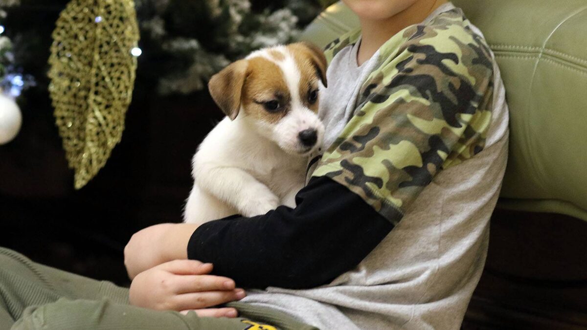 На день рождения рано утром мы пришли в комнату сына с щенком, это было в феврале. Сын был безумно рад и даже плакал, я сама чуть не расплакалась, глядя, как он обнимает этого крошечного щенка, шепчет ему что-то на ушко и не может поверить, что это теперь его собака. Сережа назвал его Тони (в честь Тони Старка).