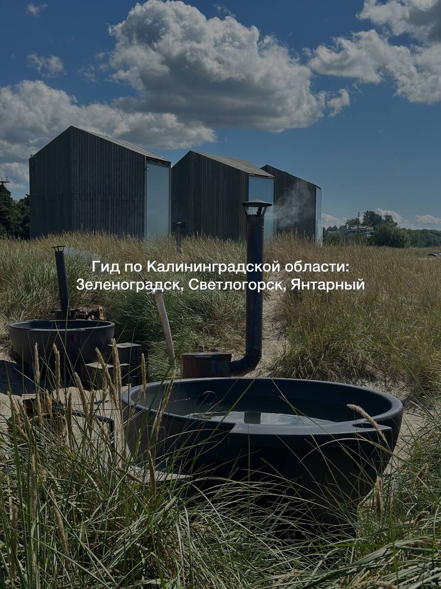 - Nordic SPA — настоящая жемчужина Янтарного и одно из самых популярных инстаграмных мест региона. Здесь уютно в любое время года: сауна, три горячие купели на открытом воздухе и зона релакса с лежаками. Летом после купелей приятно окунуться в освежающее Балтийское море, а в межсезонье SPA дарит полное уединение и атмосферу спокойствия. Рядом находятся стильные скандинавские домики A Scape, где можно остановиться на ночь. Место популярное, поэтому сеанс стоит бронировать заранее.