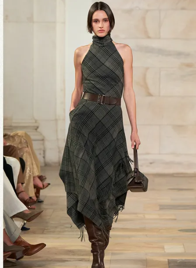 Ну какая осень без клетки? Но в 2025-м этот принт звучит особенно громко. Дизайнеры достали все: и пальто, и платья, и юбки-миди. Цвета — самые классические: теплые коричневые, бордовые, зеленые, иногда с примесью серого.