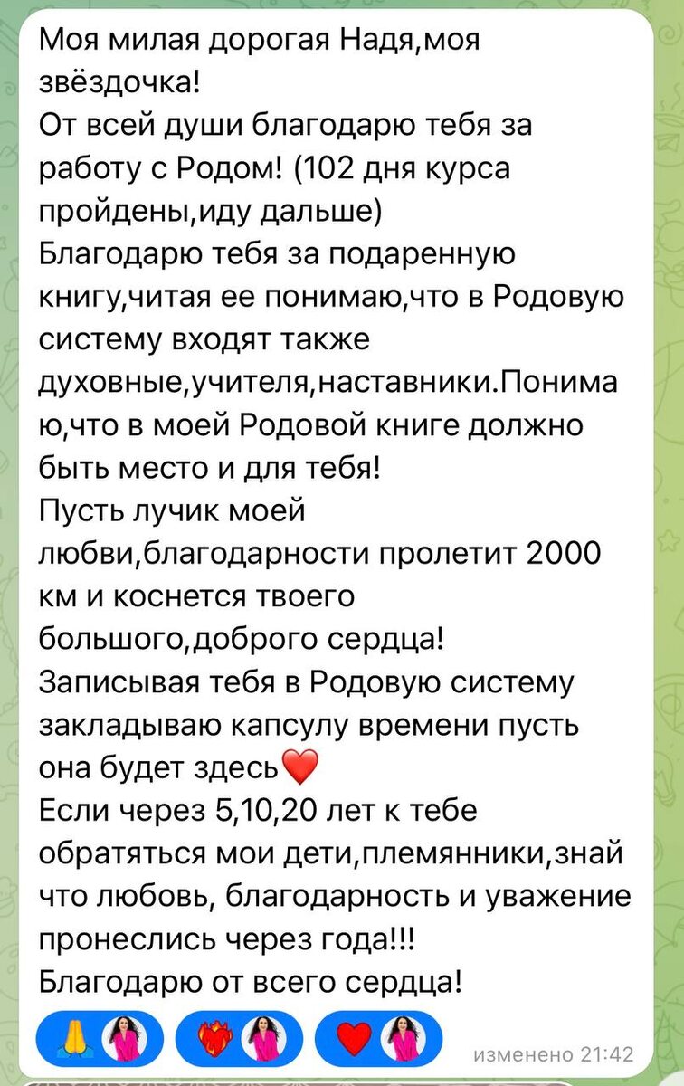 👆Я читала это со слезами на глазах!🥹🥹🥹 Моя доверительница (девушка, которая пошла в Родовую работу) записала меня в свою Родовую книгу!!! ❤️❤️❤️ Для меня это БОЛЬШАЯ честь!!🙏🙏🙏 Благодарю!!!🙏❤️🙏❤️🙏❤️