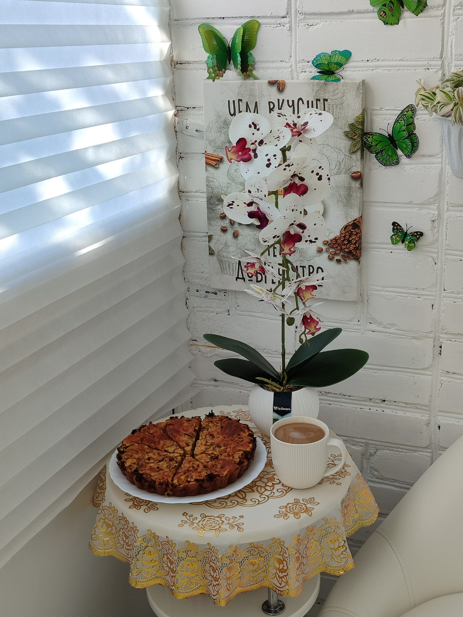 Кофе с молоком и сахзамом и два кусочка заливного пирога с квашеной капустой. Очень получился вкусный пирог 😋 Корочки тонюсенькие, начинки много – бомба просто 🔥