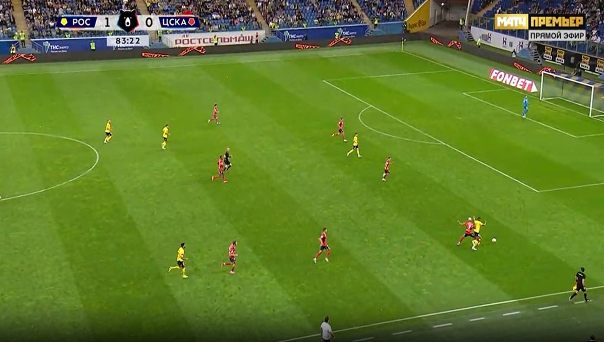 Правильное решение принимает Карасёв и показывает 2-ю ж.к игроку №7 команды ЦСКА (грубая игра)