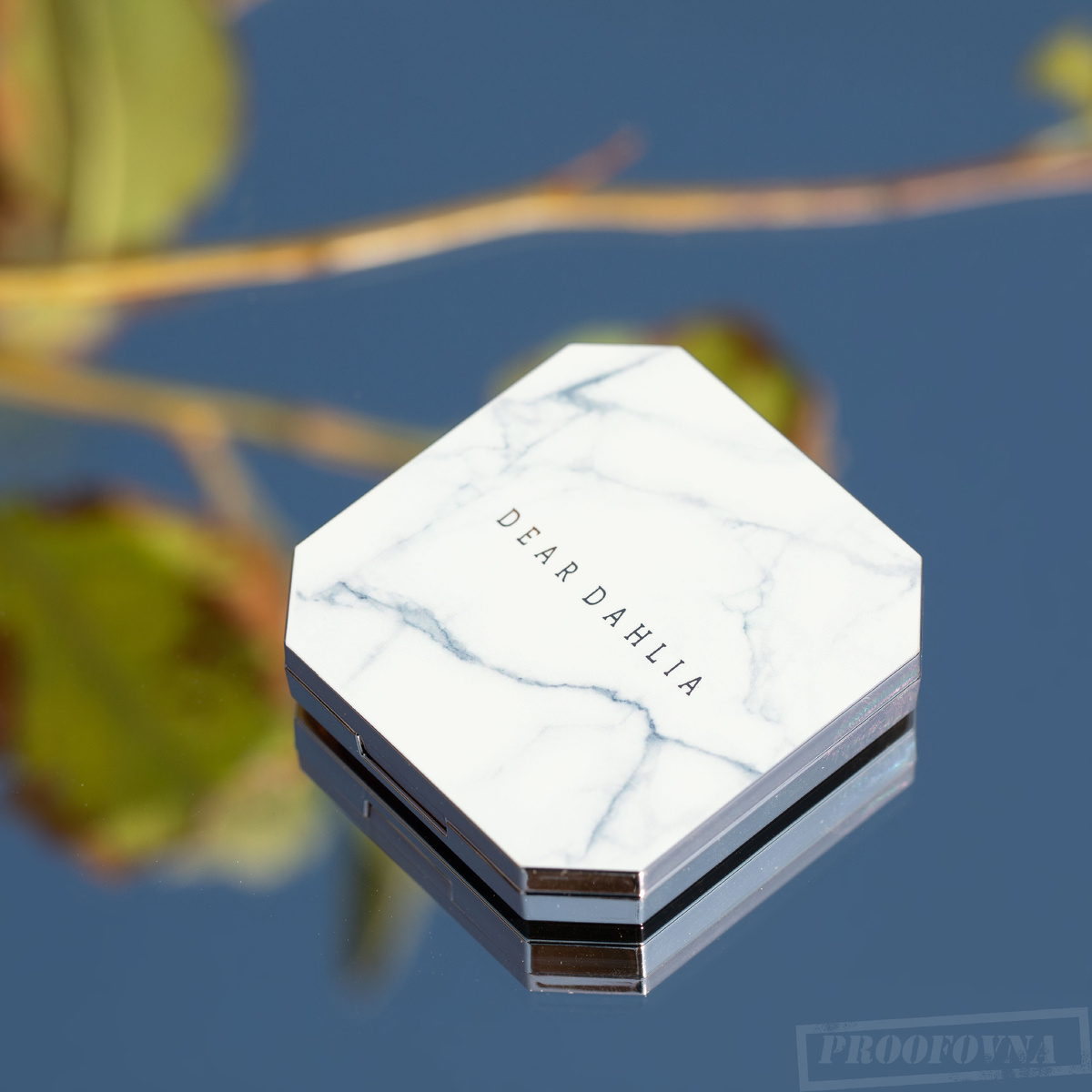 Верхняя поверхность крышки этой палетки имитирует мрамор, а всё, что ниже — сплошь золотишко. Работа аккуратная, почти тянет на люкс. Внутри и зеркало под плёнкой имеется. Я только сейчас поняла, что все ещё не распечатала его, так оно мне "нужно".