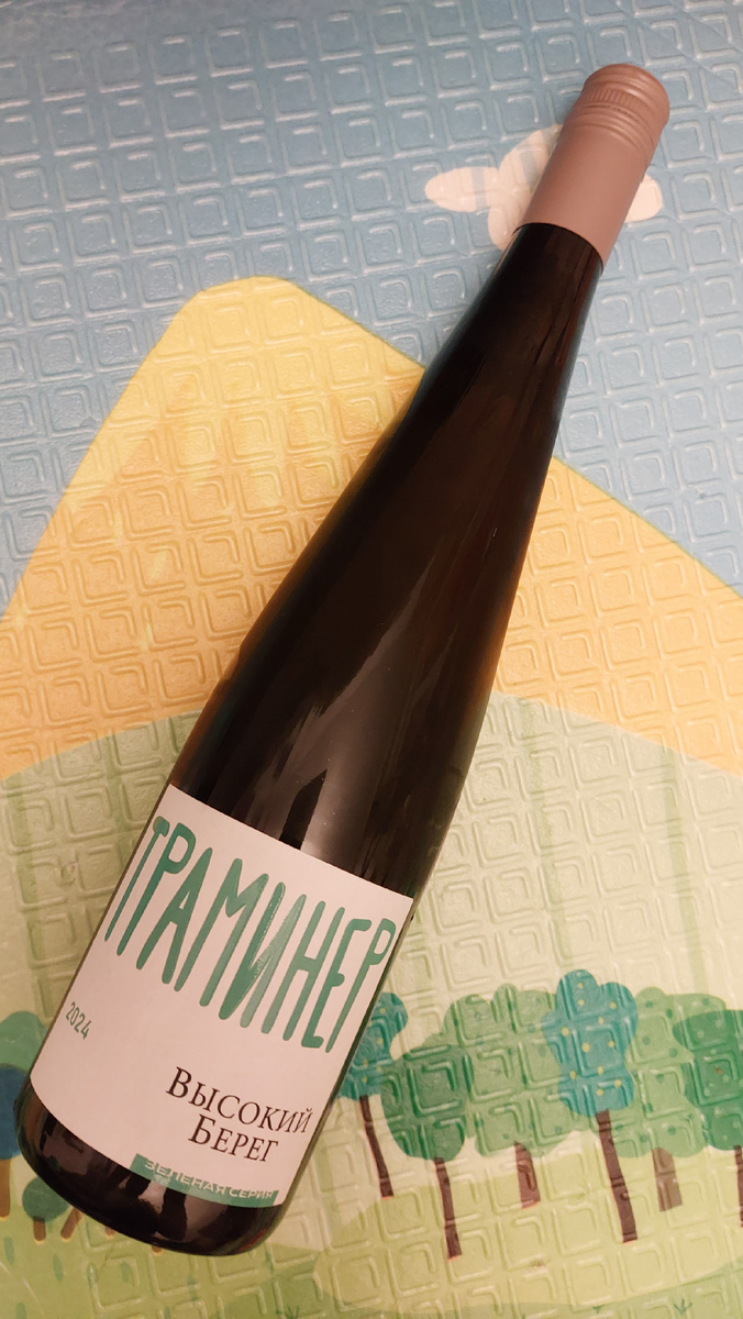 Серия вин высокий берег у отечественного гиганта винной индустрии Кубань-Вино существует давно. Самым однозначно приятным из вин этой серии, что я пробовал, был игристый рислинг. Сегодня предлагаю познакомиться с куда менее известным на первый взгляд сортом, выполненным в тихом виде в рамках данной линейки: пробуем сухое белое вино Траминер Высокий берег Зеленая серия 2024. Вино живёт в мозельской бутылке темного стекла, укрытой винтом. Этикетка в этой серии вин - образец непосредственности. Как-будто ее рисовал ребенок. Впрочем, может в этом и есть свой шарм: дизайн становится узнаваемым. Контрэтикетка выполнена стандартно для вин Кубань-Вино. Есть и уже привычный qr-code для перехода на сайт с информацией о конкретном вине. Теперь немного о сорте винограда. Траминер розовый - никто иной как всемирно известный Гевюрцтраминер. Тот самый, который немцы и французы делают даже выдержанным. Это один из наиболее ароматичныхтю сортов из мускатных виноградов. История этого винограда уходит в