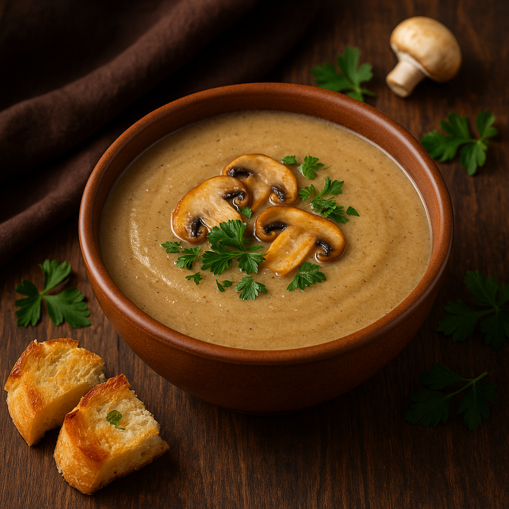 Осень — это не только яркие листья и уютные вечера, но и сезон грибов. Лесные дары — ароматные подберёзовики, маслята, шампиньоны или вешенки — отлично подходят для супов. А если приготовить суп в формате пюре, получится изысканное блюдо, достойное ресторана, но при этом простое в приготовлении. Сегодня поделюсь пошаговым рецептом грибного супа-пюре, который получается густым, бархатным и очень ароматным. Очистите картофель и нарежьте кубиками. Морковь нарежьте кружочками, лук — полукольцами. Грибы промойте и нарежьте пластинами. На сковороде растопите 20 г сливочного масла с 1 ст. л. растительного. Выложите грибы и обжаривайте на среднем огне 7–10 минут, пока не выпарится лишняя жидкость и появится золотистый аромат. В кастрюле растопите оставшееся масло, обжарьте лук и морковь 5 минут до мягкости. Добавьте картофель и обжаренные грибы, залейте 1,5 литрами горячей воды или бульона. Доведите до кипения, уменьшите огонь и варите около 20 минут, пока картофель не станет мягким. Сним