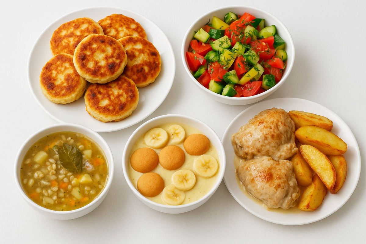 Друзья, продолжаю рубрику «Меню на день» Каждый день делюсь с вами простыми и вкусными идеями для завтрака, обеда и ужина. Меню на среду: 🍳 Завтрак — творожные оладьи с изюмом 🥣 Обед — рассольник с перловкой + салат из свежих овощей 🍗 Ужин — куриные бедра в сметанном соусе с картофелем 🍮 Десерт — банановый пудинг с печеньем А теперь подробнее расскажу про обед Рассольник с перловкой Ингредиенты: говядина на кости — 400 г перловка — 3 ст. л. картофель — 3 шт. морковь — 1 шт. лук — 1 шт. солёные огурцы — 2–3 шт. рассол — 150 мл лавровый лист, соль, перец — по вкусу Приготовление: Сварите наваристый бульон из говядины (около 1 часа). Отдельно отварите перловку до полуготовности. В бульон добавьте нарезанный картофель. Лук и морковь слегка обжарьте и переложите в кастрюлю вместе с перловкой. Огурцы натрите и немного потушите, затем добавьте к супу. Влейте рассол, приправьте и варите ещё 10 минут. Суп получается сытным, ароматным и очень домашним Остальные рецепты этого меню ищите в моё