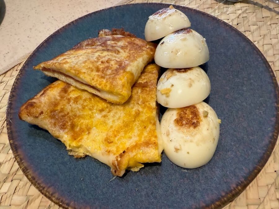 В один из дней, когда мы подошли за яичницей он приготовил её нас по-новому.