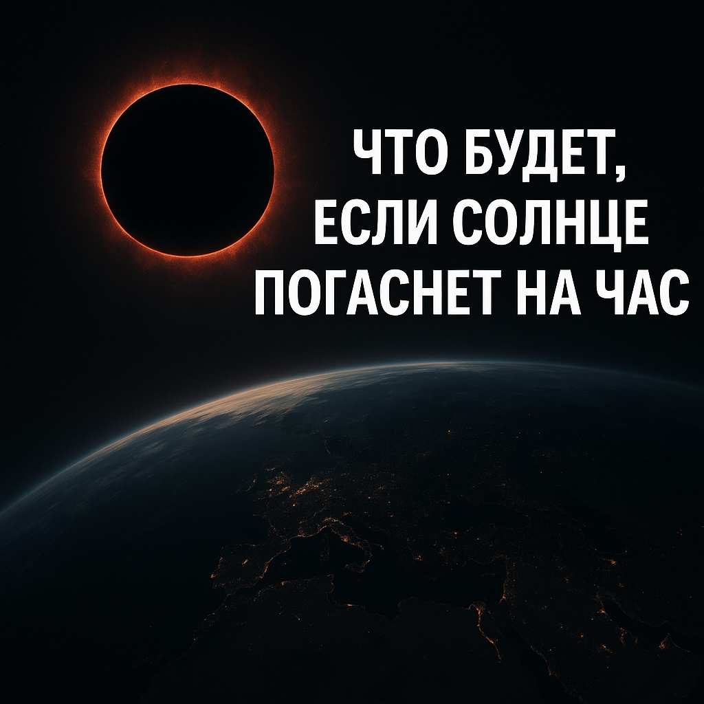 Мы привыкли к тому, что Солнце светит всегда. Даже когда его закрывают облака или когда наступает ночь — оно просто ушло за горизонт, а не исчезло. Но давайте представим невероятный сценарий: Солнце гаснет полностью. Не на миллионы лет и не навсегда, а всего лишь на один час. Что произойдёт с Землёй и с нами? Свет от Солнца идёт до Земли около 8 минут 20 секунд. Это значит, что даже если оно «погаснет» мгновенно, мы узнаем об этом только спустя эти самые минуты. Внезапно на планете воцарится абсолютная ночь — даже днём. Луна и звёзды станут видны, как в ясное безлунное небо. Для человечества это будет шок. Первыми забьют тревогу астрономы и станции слежения. Через пару минут паника распространится по СМИ и соцсетям. За один час Земля не успеет остыть до критических значений. Атмосфера и океаны обладают огромной тепловой инерцией. По расчётам астрофизиков, температура поверхности планеты при полном исчезновении Солнца падает примерно на 0,3 °C в первые сутки. За один час падение будет м