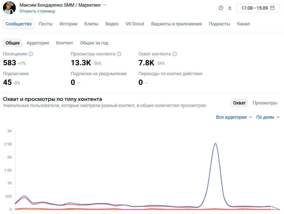 Зачем заменять когда можно получить двойной профит? Как использовать ВКонтакте не вместо Телеграм, а в совокупности с ним для роста продаж? Второй пост из цикла постов про комплексный подход в соц сетях к продажам в Телеграм. В первом посте я описал, как я использую охваты в Дзене совместно с Телеграм каналом для его роста прогрева читайте тут Многие ВК воспринимаю, как альтернативу Телеграм каналу и задают вопрос, а нужно ли вести ВК? Как заменить ТГ и перелить аудиторию в ВК? Как его грамотно использовать. Мой подход в корне другой Какие есть важные преимущества ВКонтакте. Делюсь 6 летним опытом ведения блога ВК и как я использую его в связке с ТГ: 1. Есть рекомендации. Из ленты на свои посты и видео можно получать бесплатный органический трафик. Я так и стараюсь выкладывать посты, чтобы они набирали внутренние охваты. В скринах выше видно, что мне дает группа ВК. За последние 30 дней: Охват почти 8.000 и просмотров 13,300. На халяву неплохо. Вспомните, про халявный трафик в 580.0