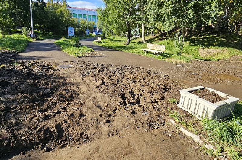 На камчатском бульваре не могут навести порядок после прокладки труб