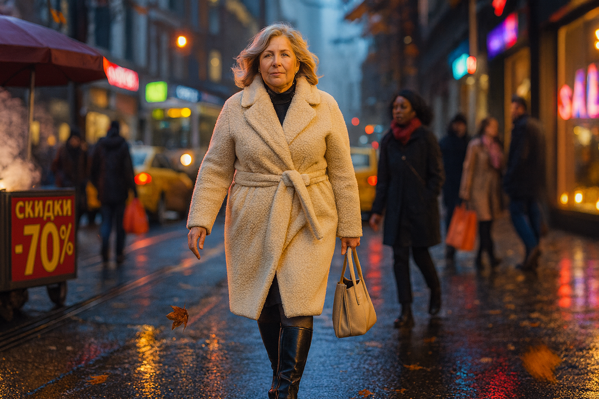 Соберите один «набор победителя»: базовые плотные колготки, сапоги в вашем цвете, свободная юбка-колонна и пальто-халат. И каждый раз, когда не хочется думать, надевайте его. Обещаю: минус три визуальных килограмма, плюс ощущение, что вы «одеты», а не «согреты чем пришлось».
