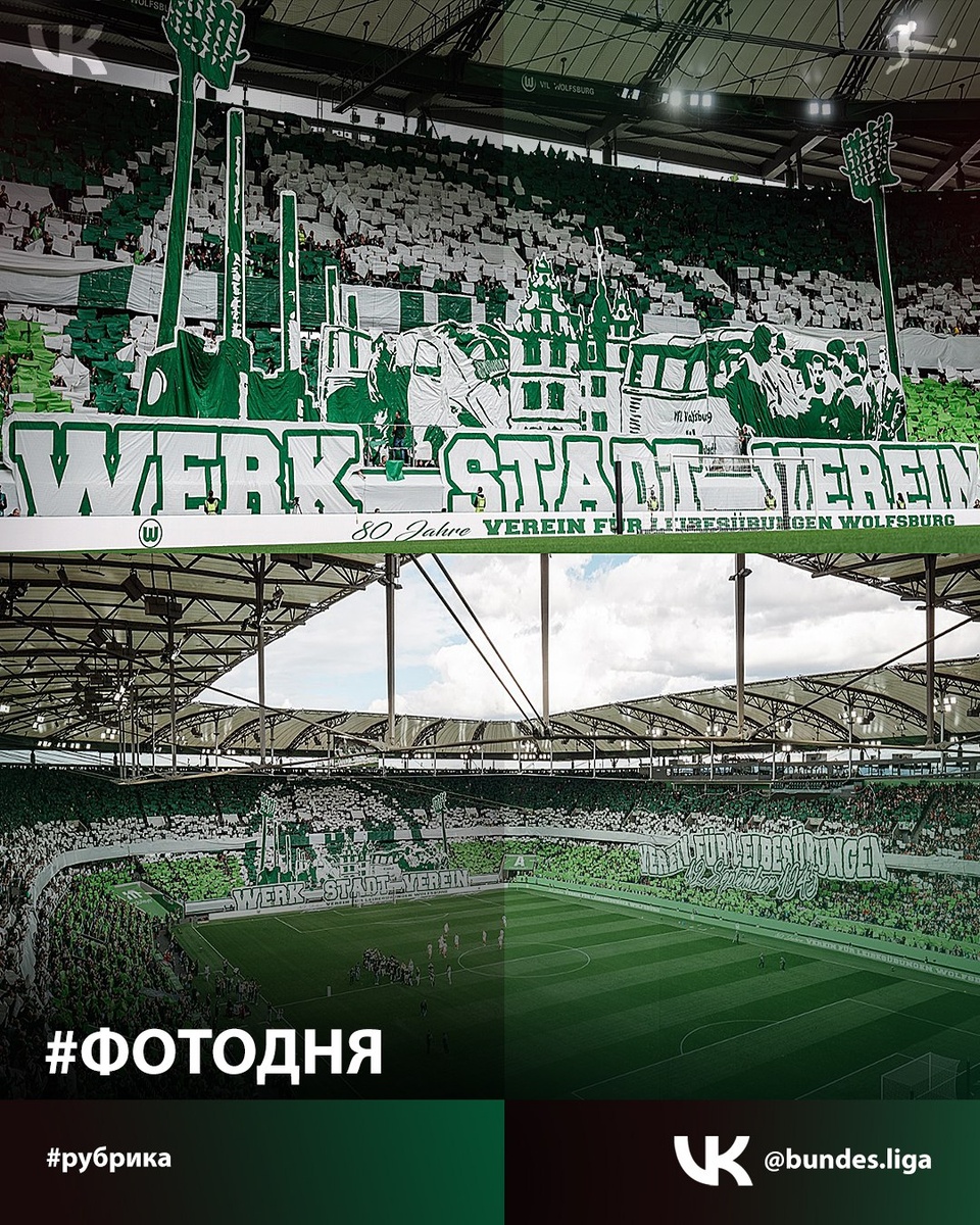 #ФотоДня 📸 Болельщики «Вольфсбурга» устроили красоту перед матчем с «Кёльном». Сама игра была подстать атмосфере. Боевая ничья 3:3 🔥