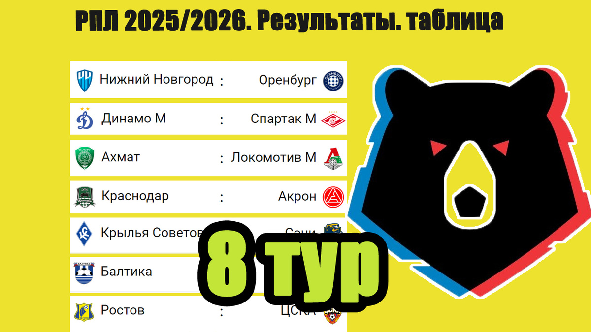 В 8-м туре РПЛ лидер одержал победу, а Локомотив и Зенит сыграли вничью. Начинаем с результативного матча между «Динамо» и «Спартаком» – 2:2.