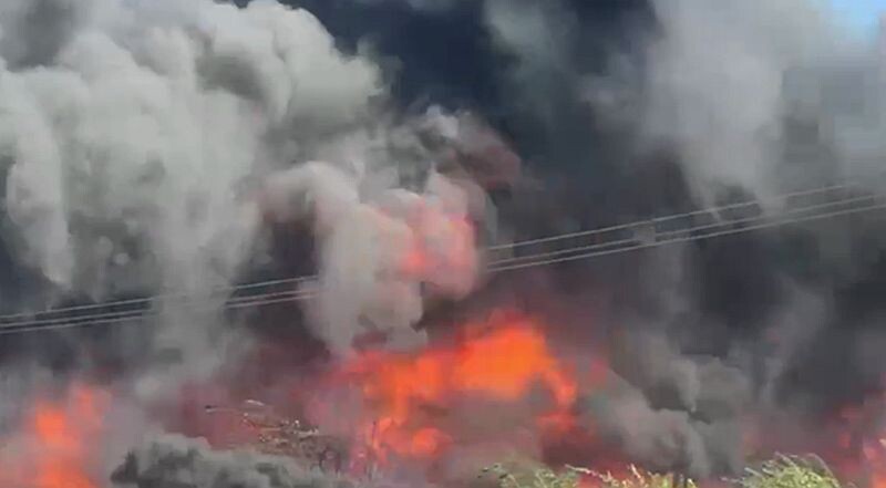 Спасатели МЧС тушат сильный пожар в Динском районе Кубани