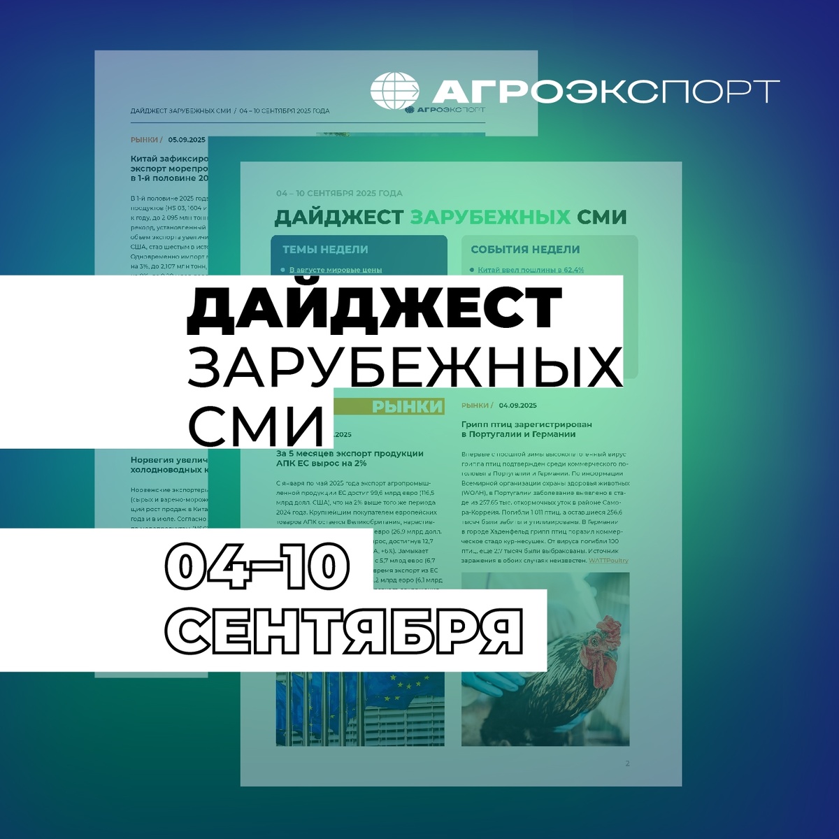 Дайджест зарубежных СМИ от «Агроэкспорта» (4 – 10 сентября 2025 года)