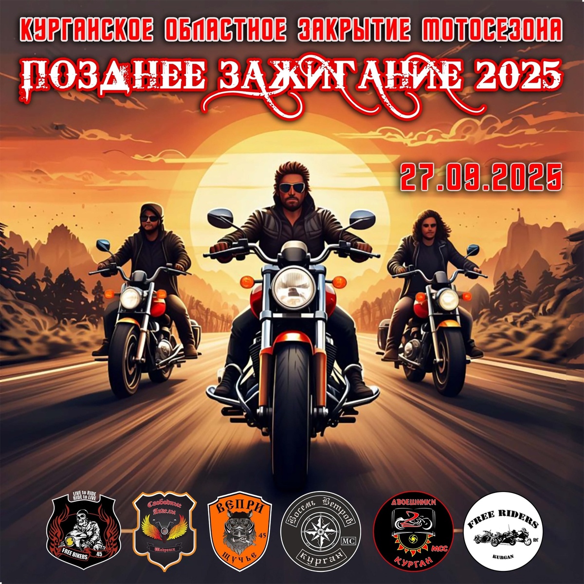 🏍️ Внимание, байкеры! 27 сентября 2025 года состоится грандиозное событие — официальное закрытие мотосезона в Курганской области! Программа мероприятия: * Сбор участников в 8:30 у Курганского автобусного завода (ул. Автозаводская, 5) * Старт мотопробега в 10:00 * Заезды по городам области * Встречи с местными мотоклубами Что вас ждёт: * Бесплатное питание и горячие напитки на всех точках * Памятный мерч для каждого участника * Незабываемые впечатления и новые знакомства Важно: * При себе иметь мотоцикл и шлем * Присоединиться могут все желающие * На точках сбора будут организованы встречи с клубами «Восемь Ветров МС», «Двоешники МСС», «Free Bikers45», «Вепри », «Свободные Ангелы» и «Free Riders RC» 📍 Координаты места сбора: 55.429682, 65.268551 Не упустите возможность провести последний мотодень этого сезона в отличной компании! 🔔 Сохраняйте пост Motorcycle •[ЕКБ] МОТО•Летим по "Road-Book 111" в тумане, ничего не видно. 🤟 https://t.me/ek6moto #мотосезон2025 #екатеринбург #ekbmoto