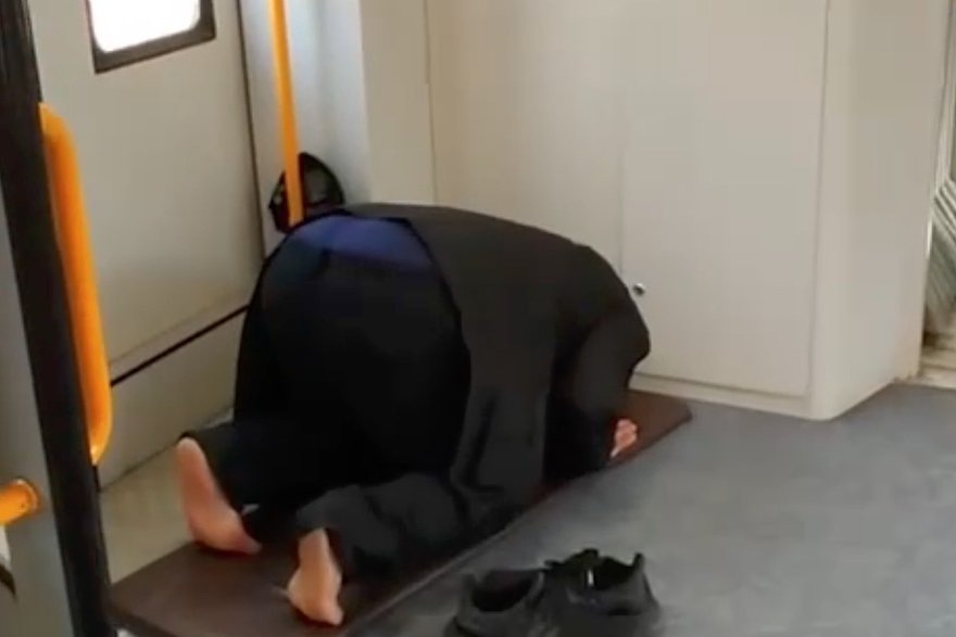 В Подмосковье мужчина совершил намаз в движущейся электричке и попал на видео. Снятые очевидцем кадры опубликовал Telegram-канал «Многонационал». На видео мужчина стоит на коленях и выполняет поклоны. При этом вместо специального ковра он использует предмет, напоминающий оторванное сиденье. Рядом с ним видна обувь мужчины. Автор канала обратил внимание на спецодежду мужчины. Он утверждает, что на видео запечатлен охранник, который должен наблюдать за сохранением порядка во время поездок. Днем ранее аналогичных охранников россияне заметили в вагоне электрички, где группа хулиганов нападала с ножом на людей. В Подмосковье трое пассажиров отказались платить за проезд. Когда контролер призвал их к порядку, один из хулиганов начал размахивать ножом, в том числе перед пожилыми людьми. Другие пассажиры вагона помогли остановить потасовку. По сообщениям канала «Многонационал», в поезде также присутствовали охранники, «которые по братски ничего не сделали своим единоверцам и буквально наблюдал