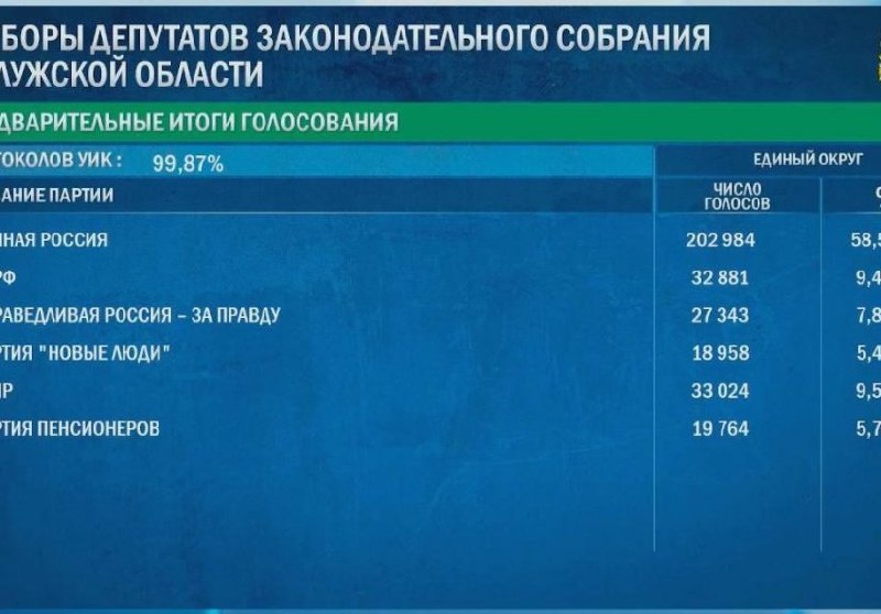 На губернаторских выборах в Калужской области зафиксирована рекордная явка и победа "Единой России" в Заксобрание