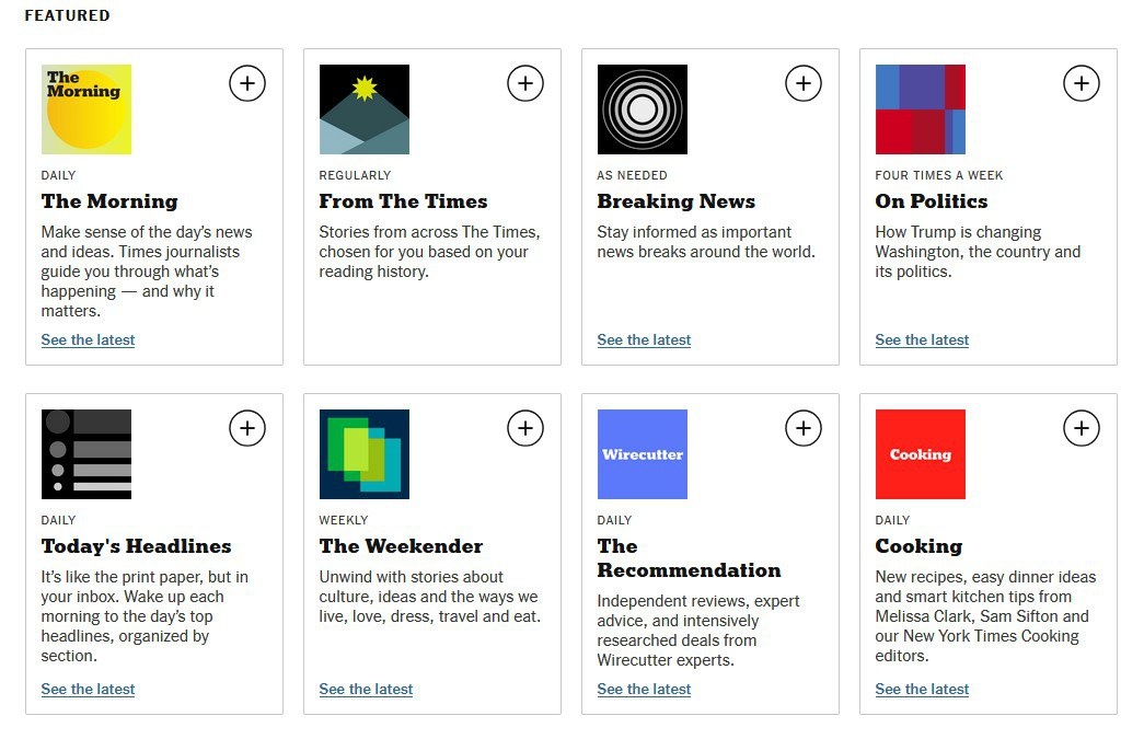 Знаете, что это такое на скрине? 👆 Это подписка на рассылки от New York Times. Вернее, малая их часть: всего на выбор предлагается аж 81 рассылок.
