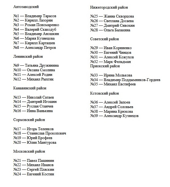 Избирательная комиссия Нижегородской области обнародовала предварительные итоги голосования по одномандатным округам на выборах в городскую Думу Нижнего Новгорода первого созыва. Информация размещена на официальном сайте комиссии.