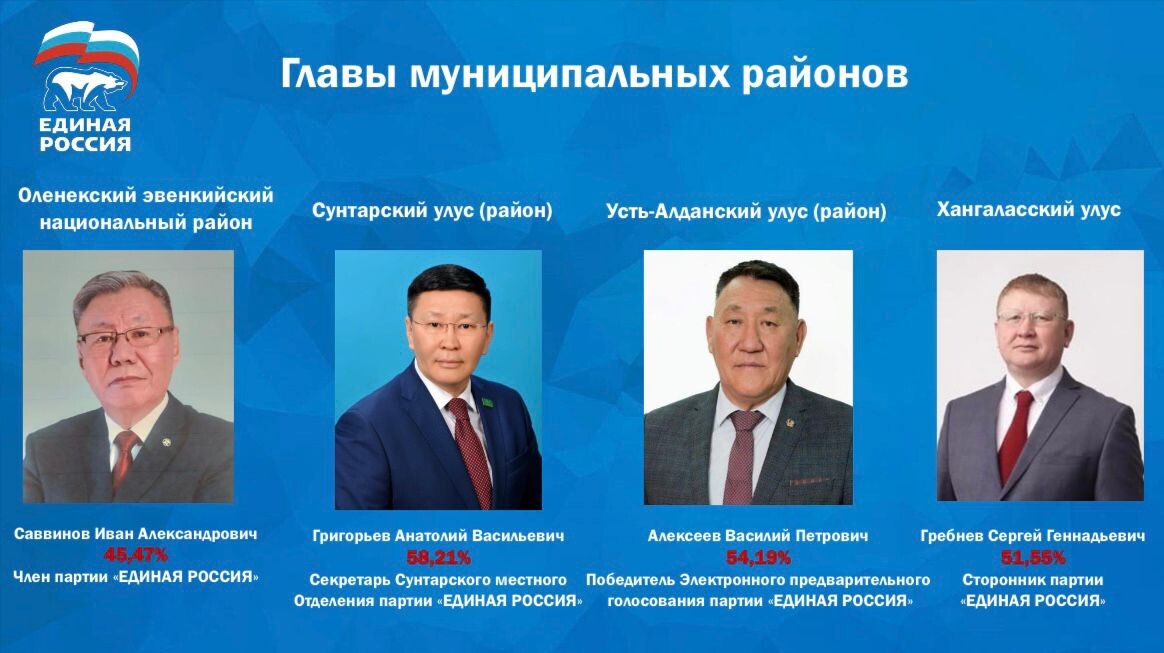 🐻❄️ ИТОГИ ЕДГ-2025 Члены и сторонники партии «Единая Россия» одержали победу на выборах глав во всех четырех муниципальных районах Оленекский эвенкийский национальный район ✅Иван Александрович Саввинов, член партии «Единая Россия» Сунтарский улус ✅Анатолий Васильевич Григорьев, Секретарь Сунтарского местного отделения партии «Единая Россия» Усть-Алданский улус ✅Василий Петрович Алексеев, победитель электронного предварительного голосования партии «Единая Россия» Хангаласский улус ✅Сергей Геннадьевич Гребнев, сторонник партии «Единая Россия» #ЕдинаяРоссия #ЕР14 #ЕДГ2025 🐻❄️Телеграм | ВКонтакте | Дзен | Яппи | Одноклассники