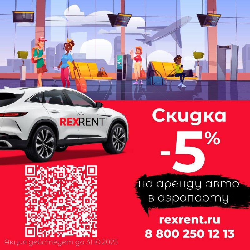 ❗️Приветствуем в Международном аэропорту Краснодара 17 сентября аэропорт им. Екатерины II Великой вновь откроет двери для гостей и жителей г.Краснодар. ⚡️RexRent готовится встретить первых прибывших в южную столицу. Специально для Вас подготовили скидку 5% на аренду авто в Краснодаре. Акция действует с 17.09.2025 до 31.10.2025 ❓Преимущества услуги: - Забрать машину можно в Краснодаре, вернуть в любом другом городе - Безлимитные тарифы - Без ограничений по пробегу - Без депозита Оставьте заявку на сайте или по телефону 8 800 250 12 13 ______________________________________ 📌Выберите машину и забронируйте маршрут без депозита уже сегодня на сайте REXRENT!
