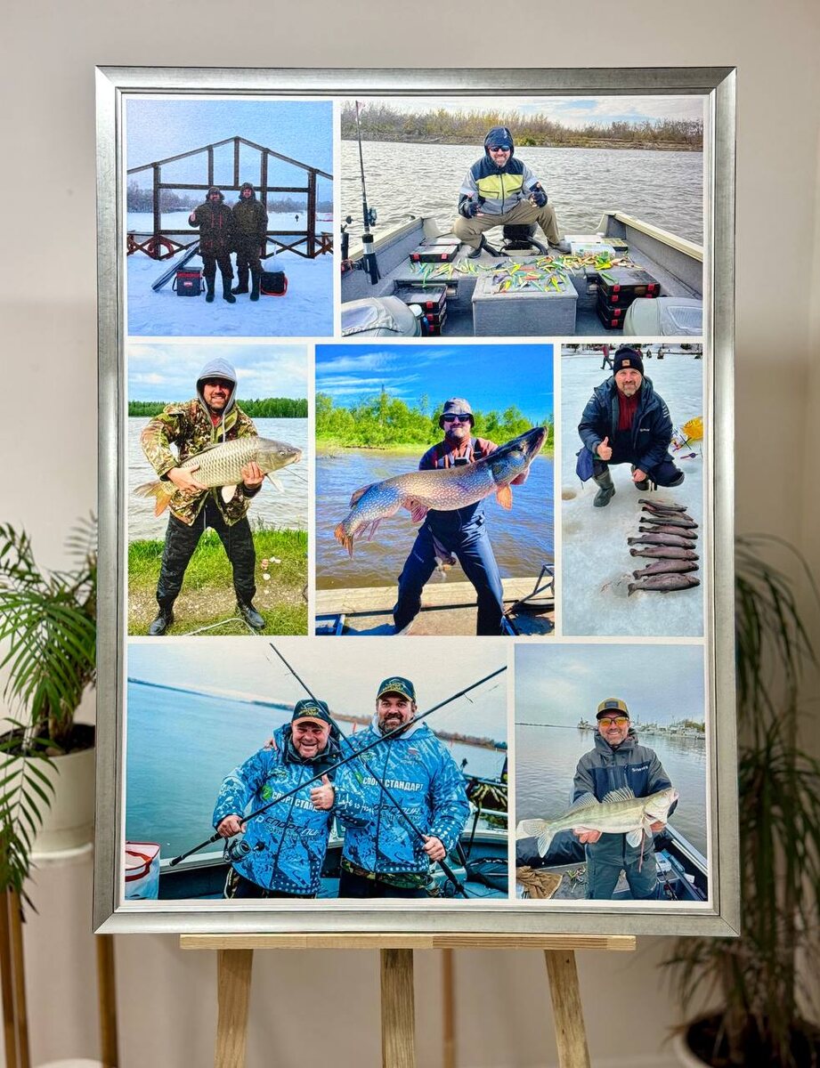 🎣 Трофеи сезона — в одной стильной картине Улов за год, лучшие моменты рыбалки и улыбки друзей — всё это можно собрать в одном эффектном коллаже на холсте. Такой портрет — не просто фоторамка, а настоящая история ваших выездов, которую приятно ставить на видное место и показывать гостям. Что вы получаете • 🖌 Авторская ручная доработка — не сухая печать: каждый кадр мы аккуратно ретушируем и при необходимости дорисовываем (цвет, свет, акценты), чтобы все фото смотрелись как единое целое. • 🖼 Премиум-печать на натуральном холсте и аккуратная натяжка на деревянный подрамник — долговечность и презентабельный вид. • 🎨 Индивидуальная компоновка — мы подбираем оптимальный макет, фон и рамку под ваш интерьер: классика, металл, узкая или широкая. • 📏 Можно сделать любой формат — от компактного для кабинета до большого плаката, как на примере. • 📦 Бережная упаковка и доставка — холст доедет целым и готовым к развешиванию. Почему это работает Коллаж сохраняет не только трофеи, но и эмоц