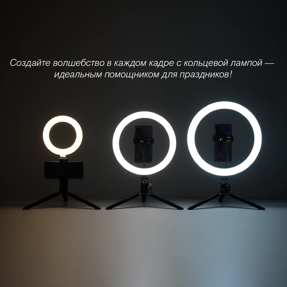 Идеальным помощником для создания и запечатления таких моментов станет кольцевая лампа! Данная лампа не только создаёт мягкое и равномерное освещение, но и добавляет сказочную атмосферу в новогодние фото и видео. Представьте, как ваши праздничные снимки и видео заиграют новыми красками, а каждый кадр будет полон тепла и уюта. Почему стоит выбрать кольцевую лампу? Регулируемая яркость: создайте идеальное освещение для вашего новогоднего образа. Удобство использования: легко устанавливается и подходит для всех типов камер и смартфонов. Компактность: лампа легко транспортируется, что позволяет брать её с собой на любые праздники. Приходите в Центр Света "Эдисон" и мы поможем Вам с выбором, чтобы ваши воспоминания стали ещё более волшебными! Ждем Вас в гости и на нашем сайте edisonlight.ru