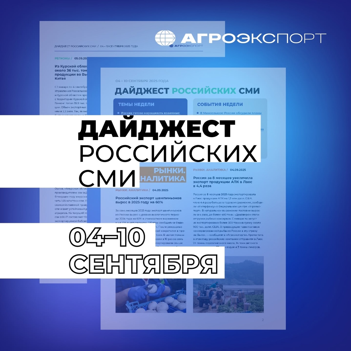 Дайджест российских СМИ от «Агроэкспорта» (4 – 10 сентября 2025 года)