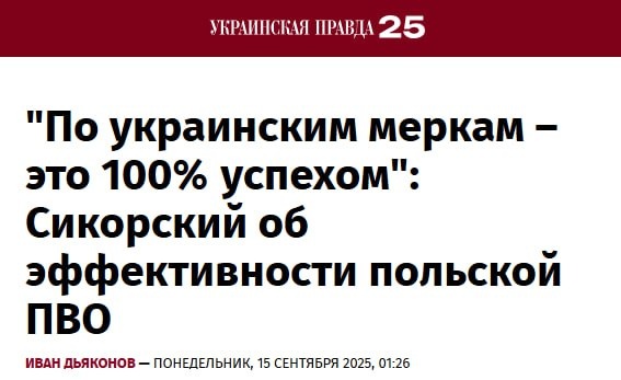То, что ПВО Польши сбили 3 из 19 залетевших в страну неизвестных БПЛА, можно назвать "полным успехом", заявил глава польского МИД Радослав Сикорский. "Если бы такое произошло на Украине, то это было бы 100% успехом", – сказал он. Несколько дней назад в Польшу прилетели два десятка дешёвых дронов, большинство из которых попадало сами, а часть сбили ракетами по несколько миллионов долларов.