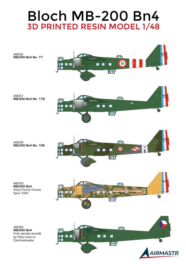 Airmastr из Чехии показала варианты окраски своей выпускаемой на 3D-принтере модели Bloch MB.200 в масштабе 1/48.