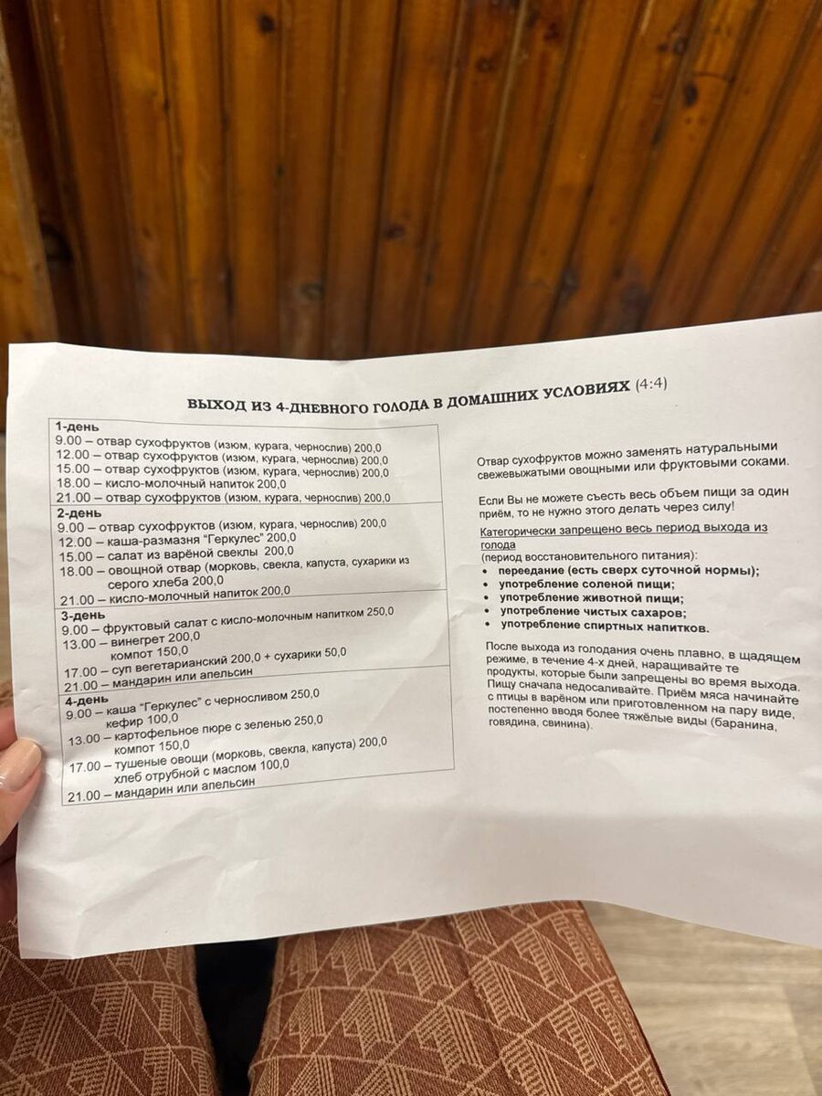 Завтра выход из голода, и вот, что мне будут готовить