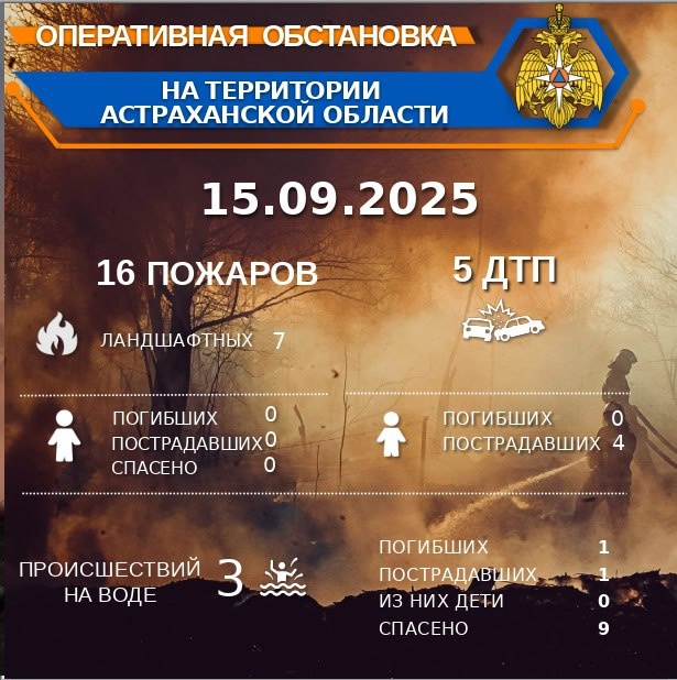 🚨Оперативная обстановка на территории Астраханской области по состоянию на 00:00 15.09.2025